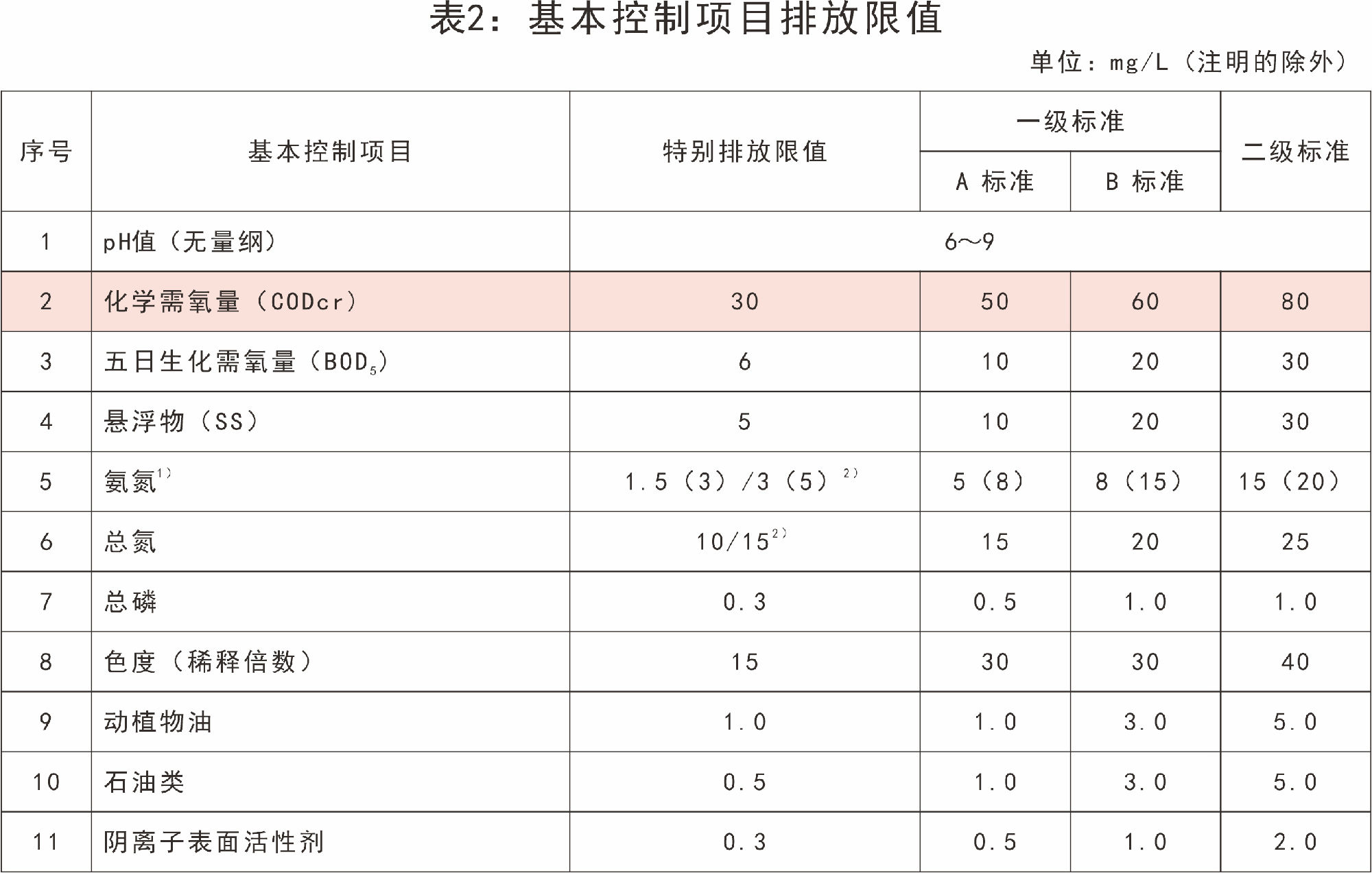 國家對污水中COD含量的排放標準